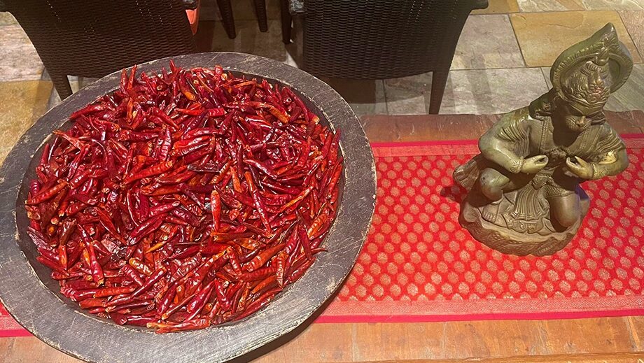 店前には大盛りの唐辛子!玄関口に厄除け効果で唐辛子を置く地域があるというのは聞いたことがあるんですけど、インドも同じ意味で置かれているんでしょうか?世界共通なんですかね?