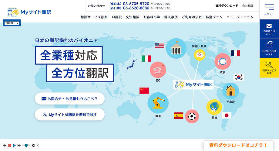 日本企業向けの多言語化サービスとなっており、国内のサポート体制などが整っており、安心して始めることができます。京都市観光協会など観光業界での導入実績が豊富で、観光・宿泊業に特化したノウハウが蓄積されているのが特徴でもあります。