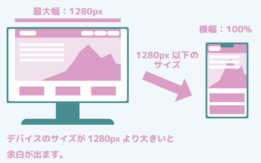 大きいサイズのデバイスでも、横幅が大きくなりすぎず、想定したデザインをユーザに見せることが可能です。
