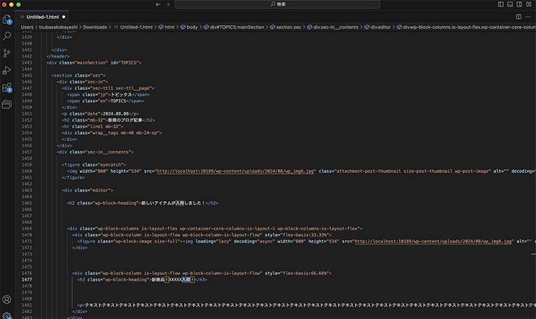 例:ブログ記事の更新(ソースコード編集)